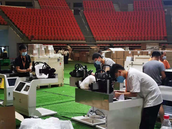 加班加點建設(shè)“獵鷹號”氣膜實驗室,從實驗室搭建到儀器的安裝、調(diào)試一步步入手,因為沒有空調(diào),工程師們的衣服汗?jié)窳擞指桑闪擞譂瘛r間就是生命,幾天內(nèi)工程師們不顧工作環(huán)境的艱苦,安裝調(diào)試了數(shù)百臺核酸檢測儀器,并在6座氣膜實驗室中迅速投入使用。