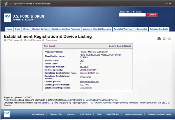 美國食品藥品監督管理局(FDA)是國際醫療審核權威機構,通過FDA認證的食品、藥品、化妝品和醫療器械等產品,是全球權威標準證明。圣湘生物四通道iPonatic核酸檢測分析儀獲美國FDA認證后,將有效擴大和滿足全球市場各級檢測防控需求,為全球疫情防控工作持續助力,推動公司全球化事業發展。