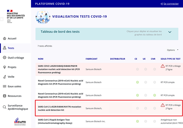 近日,圣湘生物新冠病毒L452R/E484K/K417N突變核酸檢測試劑盒順利通過法國衛生部備案許可。這也是圣湘生物第五個獲得法國衛生部備案許可的新冠檢測產品。