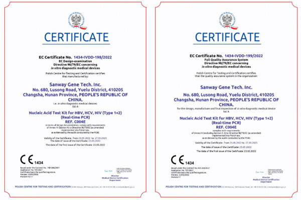 5月23日,圣湘生物全資子公司圣維基因研發(fā)的乙型肝炎病毒、丙型肝炎病毒、人類免疫缺陷病毒(1+2型)核酸檢測試劑盒(PCR-熒光法),簡稱血篩核酸檢測試劑盒,成功通過歐盟公告機構(gòu)認(rèn)證(CE List A),這是繼乙肝、丙肝和艾滋三款核酸檢測產(chǎn)品后,圣湘生物拿下的第四個CEList A認(rèn)證。